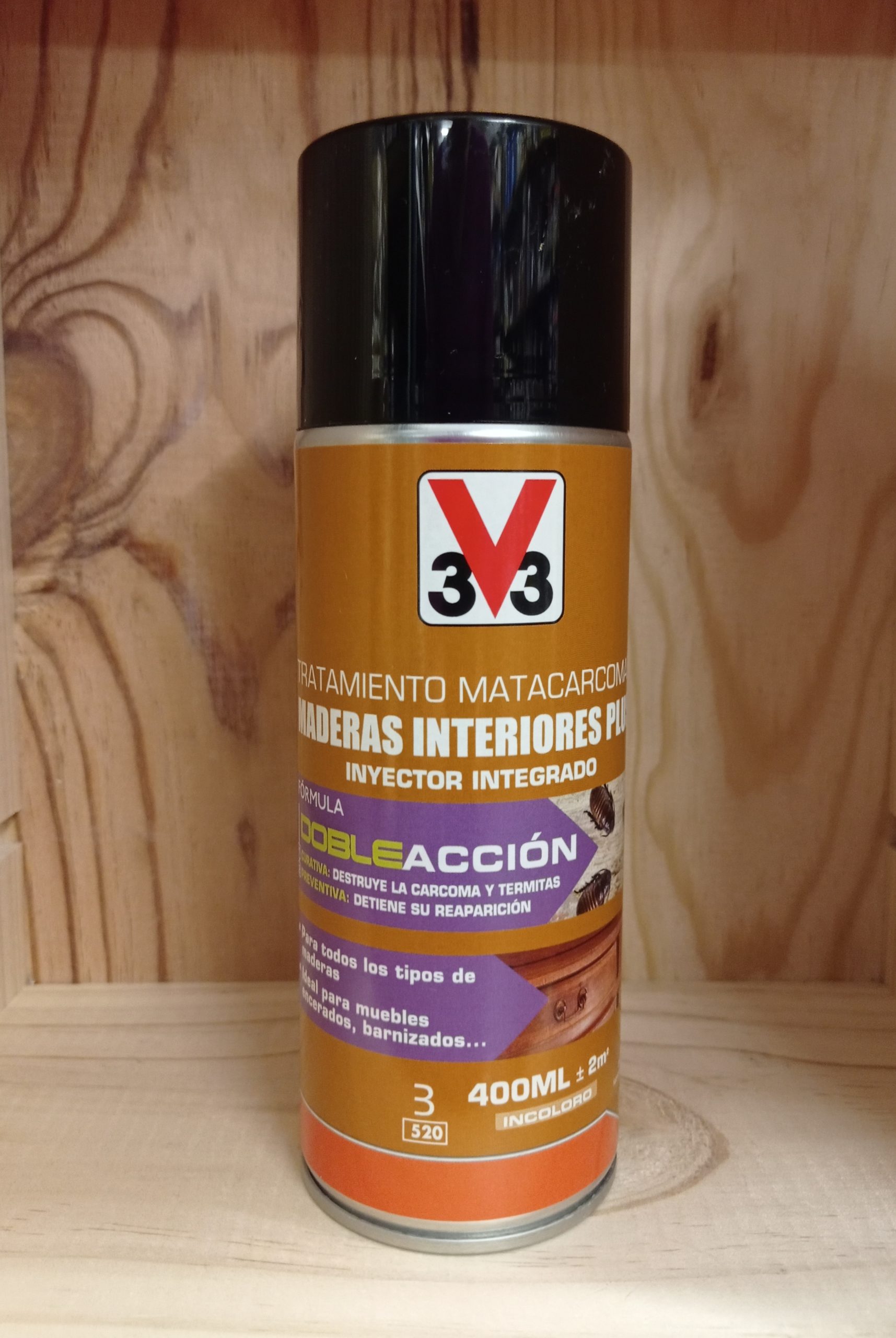 3V3 Tratamiento Matacarcomas 400 ml. Spray. Tratamiento que ACTÚA INMEDIATAMENTE contra los insectos e IMPIDE su reaparición al